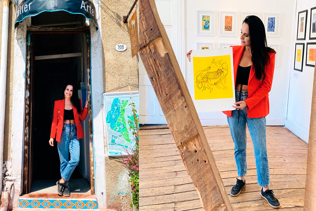 Hoy me encuentro dividida entre los diseños de mis accesorios bordados, obras bordadas y el grabado. Ya este 2025 instalada en el espacio cultural PERRO SUR en Valparaíso.